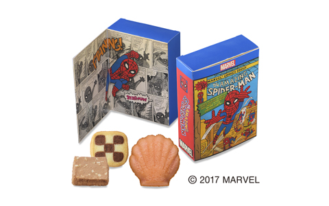 特長:マーベルのキャラクター<スパイダーマン>をコミック調にデザインしたブック形ボックスに、いちごマドレーヌ、クッキー、焼きショコラを詰め合わせました。