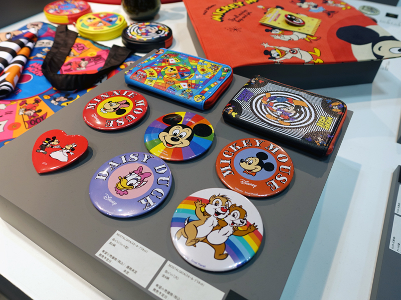 ここで特に気になったものは、レトロモチーフのコーナー。ポーチやバッグ、缶バッチなどポップなカラーがとってもかわいいくて、純粋にここにあるもの全部ほしいと思っちゃいました。